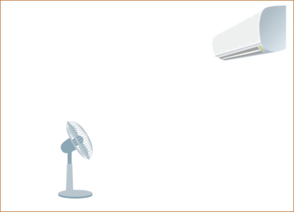 しかしエアコンと扇風機を活用する事で効率的に部屋の温度を下げる事ができます。(自宅によっては、エアコンか扇風機のどちらかしかない場合があります。)